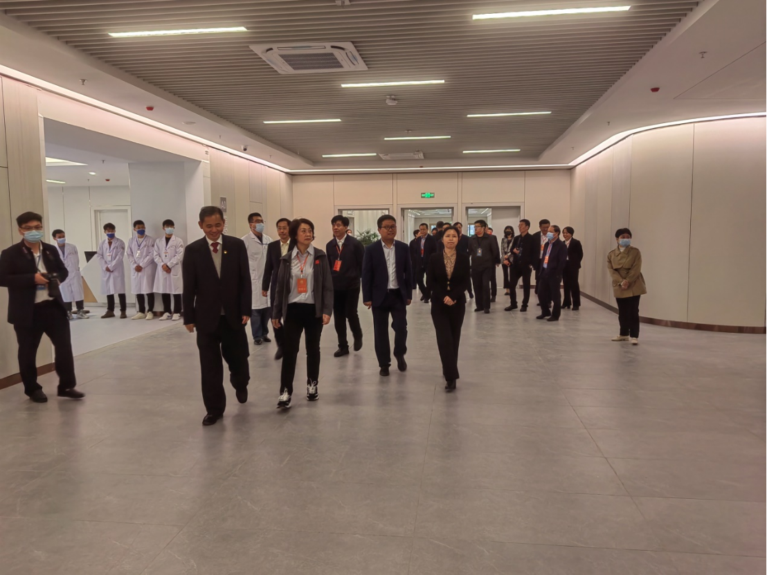 廖奇志一行深入医院门诊大厅、住院部、手术室、抢救室、放射科等区域进行实地调研,认真听取医院项目设计理念、医疗功能布局、智慧医院建设、设备安装配置等相关情况的汇报,详细了解了医院建设进展情况。