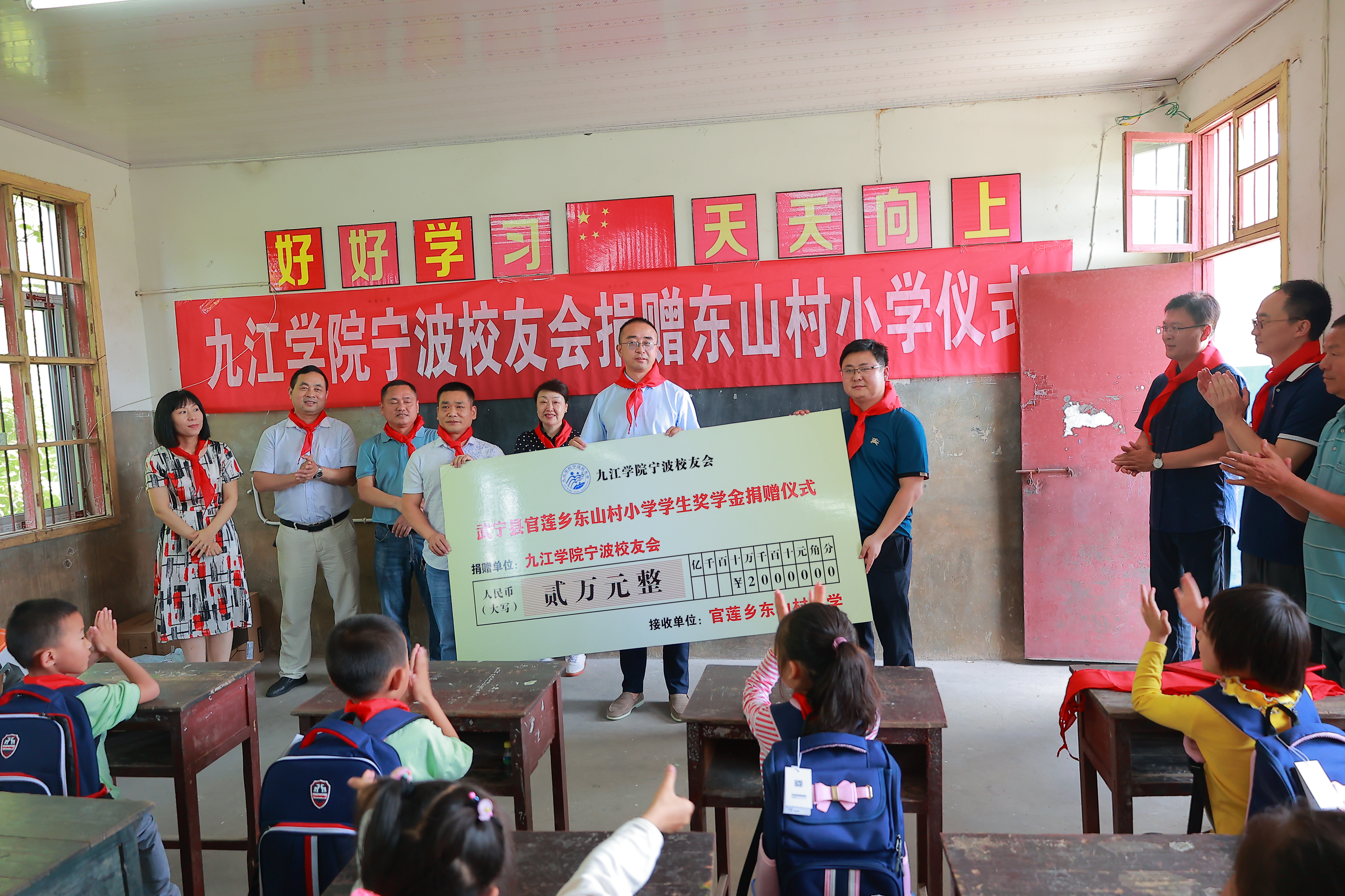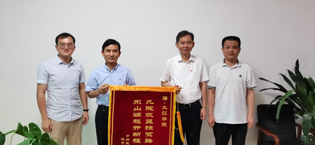 乡党委书记刘东昌、乡长张来到九江学院赠送锦旗