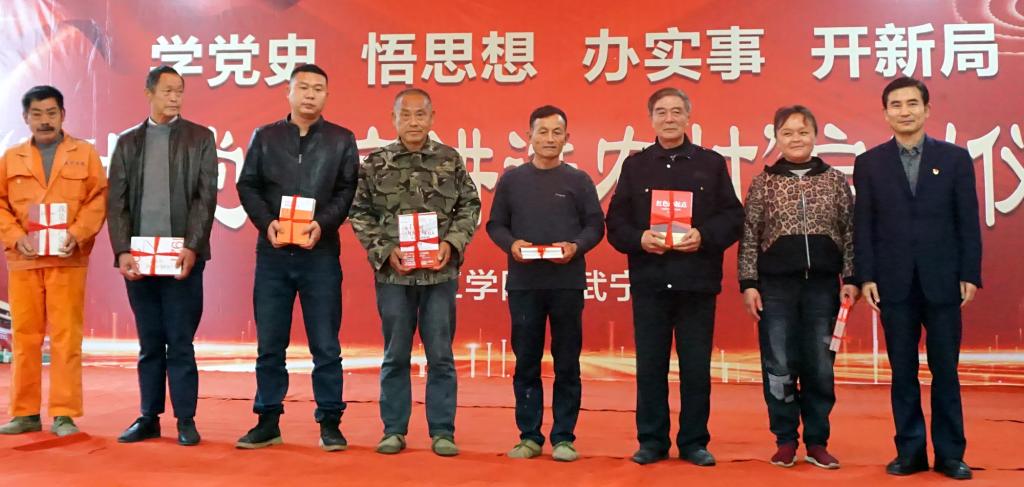 九江学院党委副书记魏立平向东山村村民赠送党史书籍