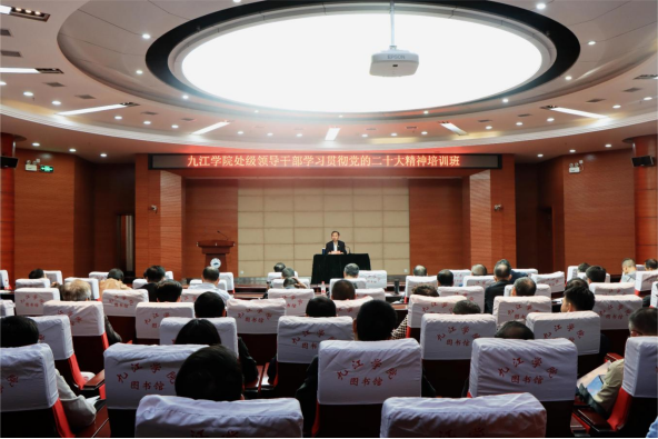 为深入学习贯彻党的二十大精神,进一步统一思想、凝聚力量,根据省委组织部、省委教育工委的工作安排和要求,近期,九江学院举办处级领导干部学习贯彻党的二十大精神培训班,全校处级领导干部参加培训。