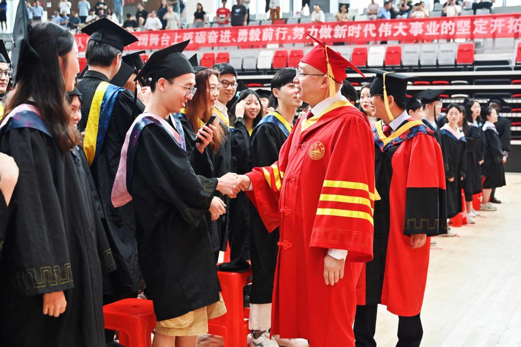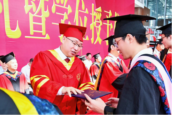 在学位授予仪式上,校长陈小林、副校长王万山等校领导为毕业生代表颁发毕业证书,各二级学院院长走到毕业生中间,为2023届九院毕业生拨穗正冠、握手拥抱,祝愿他们前程似锦、鹏程万里。