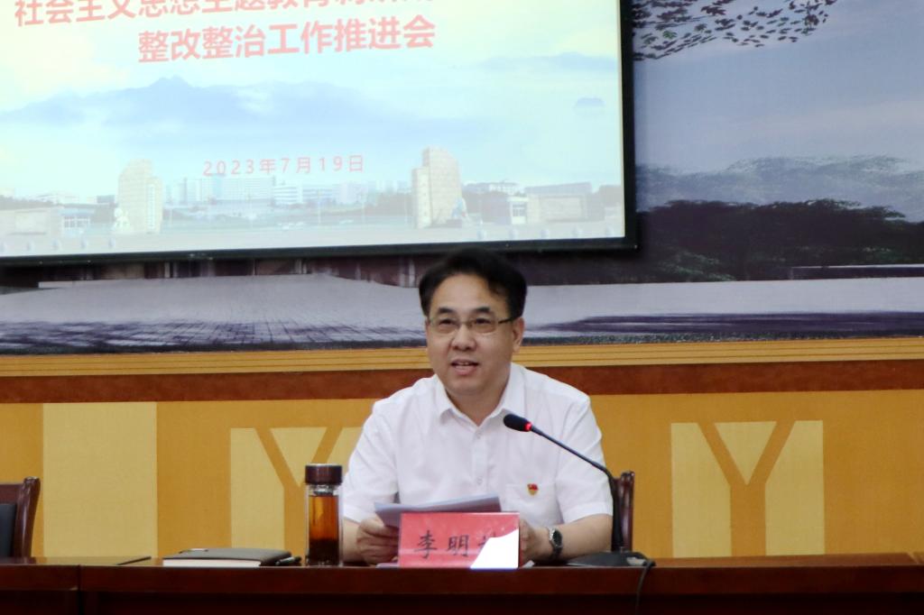 7月19日上午,九江学院学习贯彻习近平新时代中国特色社会主义思想主题教育调研成果转化暨整改整治工作推进会在行政楼四号会议室召开。会议强调,要深入学习贯彻习近平总书记重要讲话重要指示精神,认真落实中央和省委主题教育部署要求,以求真务实作风和自我革命精神,继续推动主题教育调研成果转化,坚定不移把整改整治抓紧抓实抓好,推动学校主题教育不断取得新的更大成效。省委第十一巡回指导组副组长、新余市人大常委会副主任林愚出席并讲话。校党委书记李明斌主持会议并讲话。学校党政班子成员,巡回指导组成员陈和谦、黄蓉、敖思勇出席会议。