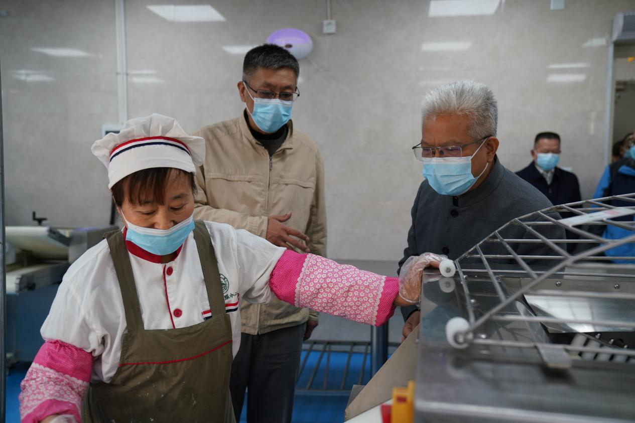 随后,考核组一行现场查看了紫薇园校区学生第二食堂中央厨房,重点查看了米饭生产线、豆制品生产车间、白案流水生产线等生产工艺流水线和质量监督检查办公室等区域。