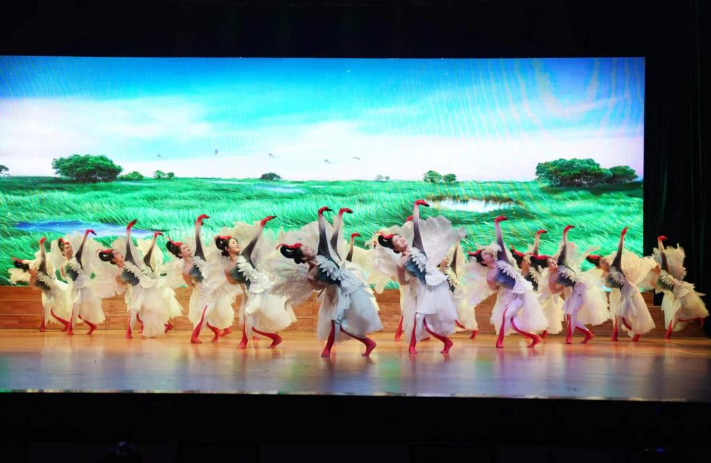 《大湖之灵》,在美轮美奂的灯光下,演员们用优美的舞蹈表达春天来临的喜悦,用形象生动的身体语言演绎着劳动的场景,诠释播种着希望的期盼,舞蹈赢得了现场观众的阵阵喝彩。这部舞剧今天首次亮相九江学院舞台,采用抒情与叙事相结合的手法,演绎生态优先,绿色发展的理念,塑造出鄱阳湖边生生不息、绵延不绝的生命种群形象。