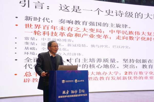 薛家宝作了题为《新时代应用型高校的高质量发展》的报告,指出新时代的应用高校建设要在底色不变、方向不偏、动力不竭的基础上,实现学科专业与产业链创新链人才链的相互匹配、相互促进,走应用技术型办学之路。