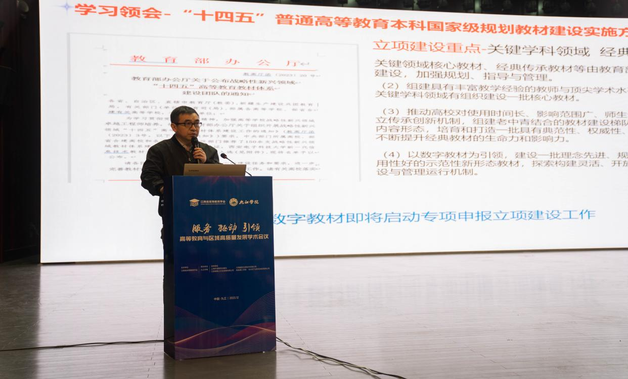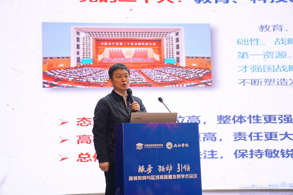 12月28—29日,由江西省高等教育学会主办,九江学院承办的“服务 驱动 引领”高等教育与区域高质量发展学术会议及同期活动在九江学院成功举办。来自省内外40余所高校专家学者、企事业单位代表及九江学院师生代表300余人参加了会议。江西省委教育工委委员、教育厅副厅长、省高等教育学会会长刘小强出席会议并致辞。省高等教育学会副会长周利生主持会议开幕式。九江学院校长陈小林代表学校致开幕辞。