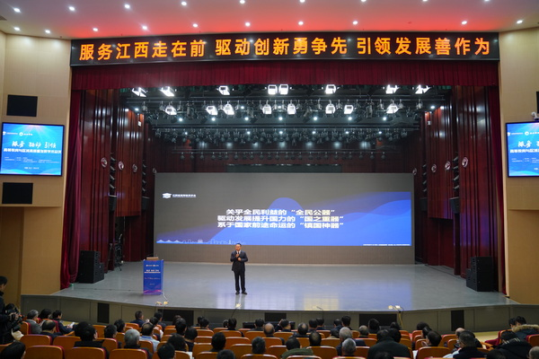 温和瑞作了题为《需求引领、科教融汇、产教融合、协同创新——建设服务国家战略和区域高质量发展的高水平大学》的报告,阐述了建设高水平大学的江西理工大学实践路径。