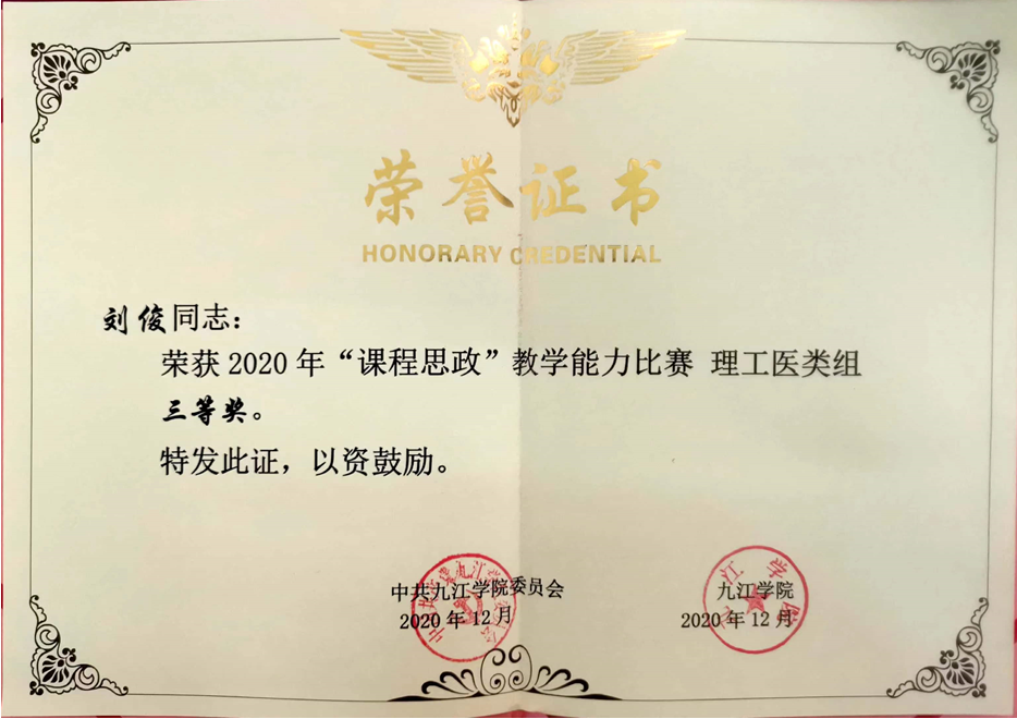 2019年6月,刘俊带着青春的无限激情,满怀对教育事业的忠诚,来到九江学院,踏上三尺讲台,成为一名光荣的人民教师。她认为,“教师”二字不单单是一个职业名词,想要真正做好一名教师,一名合格的、优秀的教师任重而道远。