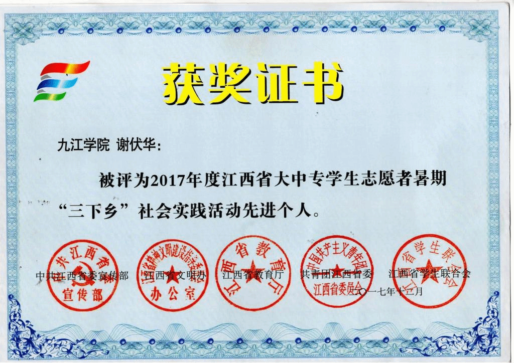 谢伏华积极用党的理论引领乡村振兴及服务地方发展工作。2017年暑假,他到武宁县官莲乡东山村开展精准扶贫和精准脱贫调研,就《精准扶贫战略视角下江西旅游扶贫与生态扶贫研究——基于江西省武宁县官莲乡的调查》《精准扶贫背景下农村治理转型机制创新研究——基于江西省武宁县官莲乡东山村的调查》这两个课题展开调研,并获省级先进个人称号。