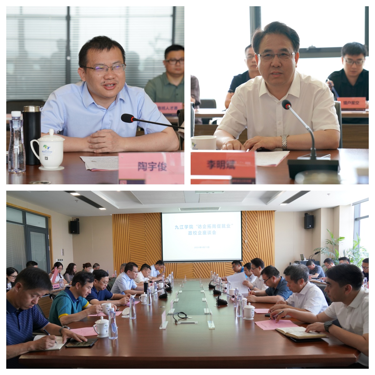 双方在鄱阳湖生态科技城会议室召开政校企座谈会,双方领导与14家入驻濂溪区产业园和鄱阳湖生态科技城的企业代表开展座谈。政校企三方代表围绕合作办学、就业实习基地建设、学生留浔就业等方面进行了富有建设性的探讨交流。