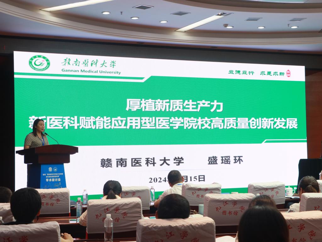 盛瑶环作了题为《厚植新质生产力:新医科赋能应用型医学院校高质量创新发展》的报告。报告将发展新质生产力与应用型本科高校的建设深度链接,以赣南医科大学的发展征程为蓝本,探讨其在“新医科”发展中的创新做法,打造具有地方特色与学科特点的人才培养高地。