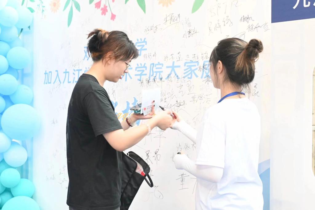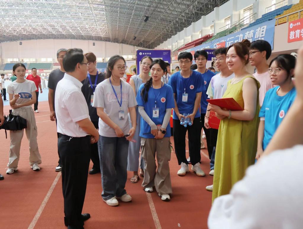 “家是哪里的?”“来九江有没有什么不适应的?”“报到都还顺利吗?”在报到现场,校领导与学生及家长亲切交谈,勉励同学们保持学无止境的状态,合理规划大学生活,在新的起点上,书写新的青春诗篇。