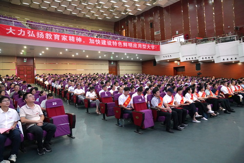 围绕今年教师节的主题“大力弘扬教育家精神,加快建设教育强国”,李明斌向全校教职员工提出三点希望。一是要弘扬践行教育家精神,全面落实立德树人根本任务。要坚定政治立场,全面领会党的二十届三中全会关于深化教育综合改革作出全面部署的内涵要义。要提高思政工作本领,自觉把党的教育方针贯彻到教育教学全过程。要提升教书育人能力,教师要涵养“大情怀”,提升“大境界”,成就“大学问”,成为塑造学生品格、品行、品味的“大先生”。二是要聚焦学校高质量发展,助推教育强国建设。要强化责任意识,勇于担当作为,集中智慧攻坚克难,持续推进学校高质量发展。要结合学科专业特点及自身实践素质,有计划、有目的、有重点地与地方、单位、企业精准对接,深化教育链与产业链、创新链、人才链相融合,推进产教融合,提升实践教学、科学研究和社会服务工作质效。要深化教育观念的创新,由着重“教”向提升“学”转变,从“个人”向“团队”转变,从“理论”向“实践”转变。要创新教育内容,推进教学模式创新,引导和组织学生开展研究性学习、探究性学习、项目式学习。要强化科研创新,着力强化团队建设和平台建设,推进“成果”向“转化”转变。三是要凝聚干事创业强大合力,强化高素质专业化教师队伍建设。要充分发挥各级党组织的领导和把关作用,确保党牢牢掌握教师队伍建设的领导权和主动权,保证教师队伍建设正确的政治方向。要深化管理机制改革。为教师提供“比学赶超”的良好外部环境,激发教师内生动力。要营造尊师浓厚氛围。加强宣传,讲好中国教育家故事,充分利用新媒体,优化宣传舆论环境,广泛宣传身边典型的感人事迹和爱国情怀,不断提升教师职业荣誉感、使命感和责任感。