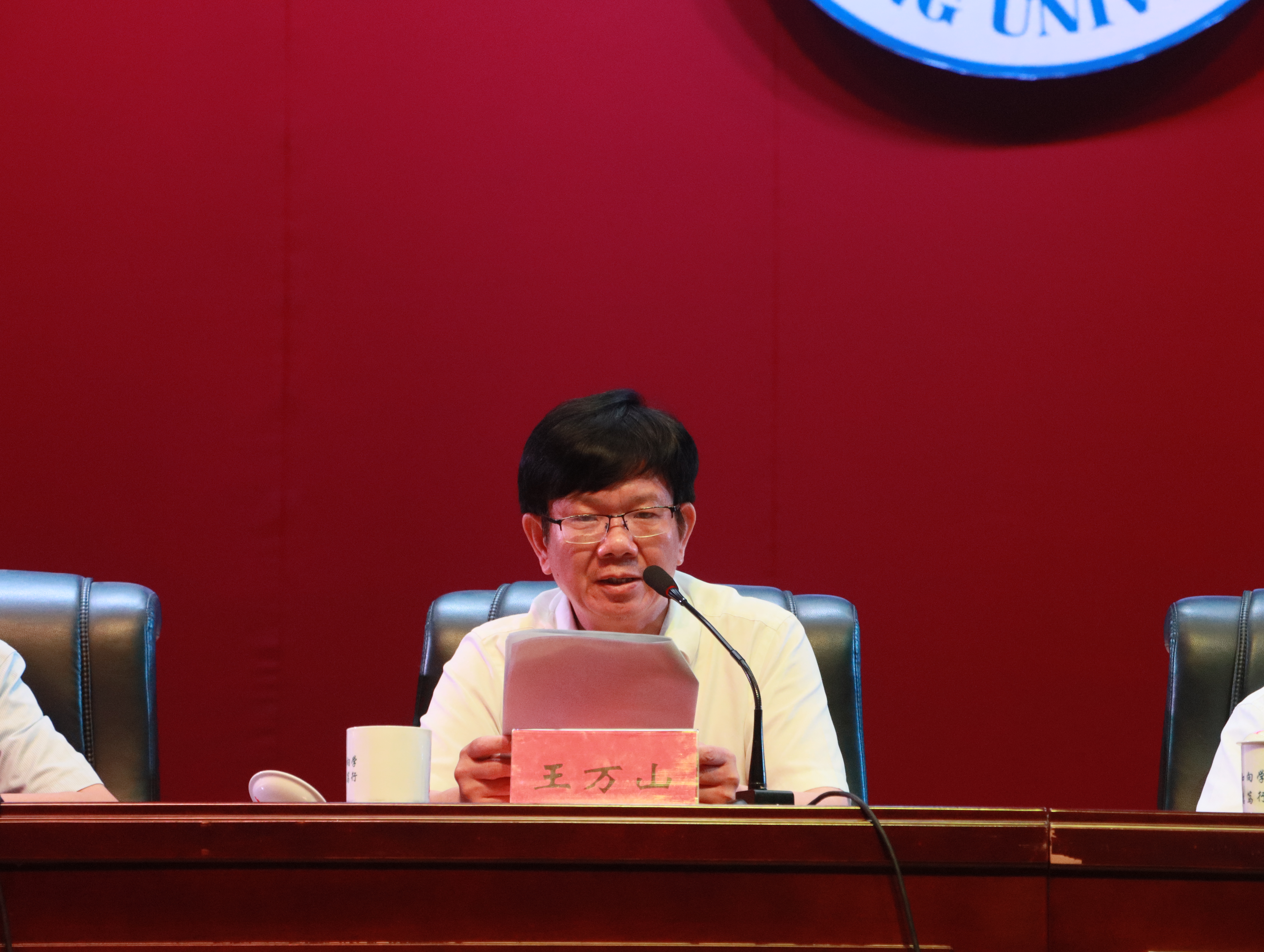 党委委员、副校长王万山在主持会议时指出,全校教职工要进一步强化主人翁意识和责任意识,立足岗位、扎实工作,大力弘扬教育家精神,始终把“老师”作为第一身份,把“育人”作为第一要务,把“治学”作为第一追求,不断提升师德师风素养和教书育人本领,争做新时代教育家型教师。