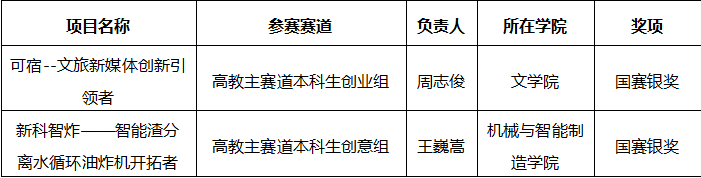 永利yl23411集团官网文学院《可宿--文旅新媒体创新引领者》和机械与智能制造学院《新科智炸——智能渣分离水循环油炸机开拓者》2个项目推荐进入国赛总决赛,并全部晋级现场赛,最终荣获国赛银奖,这是永利yl23411集团官网自2015年大赛启动以来,继2021年首次突破国赛铜奖后的又一次突破。这次充分了体现永利yl23411集团官网深化创新创业教育改革和探索在以创新创业人才培养为导向的应用型人才培养新模式取得的重要成果。