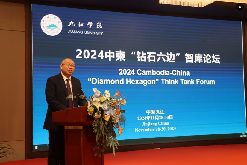 2024年是中柬人文交流年,为进一步推动中柬全面战略合作伙伴关系发展,构建高质量、高水平、高标准的新时代中柬命运共同体,助力“钻石六边”合作架构走深走实,11月29日,“一带一路”智库合作联盟、中柬文化交流联盟、九江学院在浔共同举办“2024中柬‘钻石六边’智库论坛”。来自北京大学、柬埔寨王家研究院、北京外国语大学、云南省社会科学院、广西社会科学院、泰国正大管理学院、九江学院、高棉日报社、广东省驻柬埔寨经贸代表处等近三十家高校、科研机构、企业及媒体界代表以线上、线下相结合的方式参会,围绕“中柬全面战略合作的探索与实践”展开研讨。