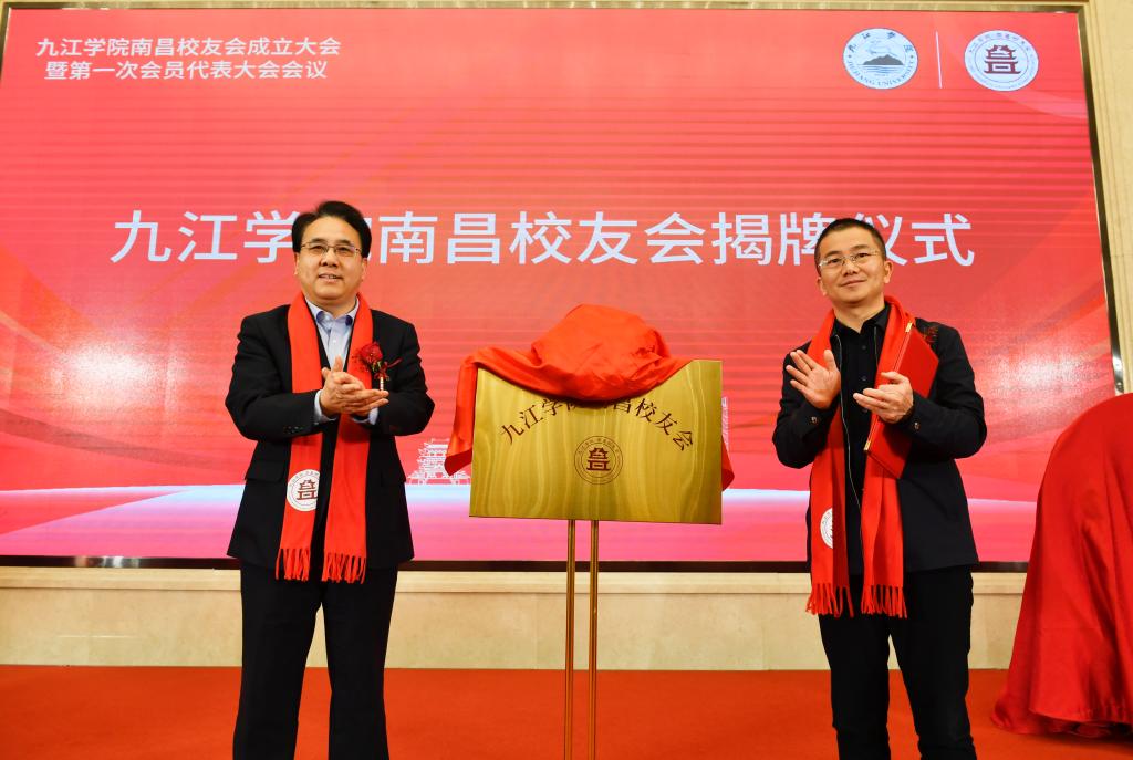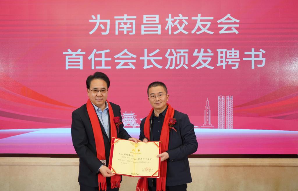 党委书记李明斌与首任会长共同为南昌校友会揭牌