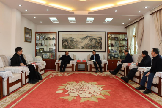 3月14日,九江市卫健委党委书记范志斌一行到永利yl23411集团官网,就深化医教协同、优化医疗资源配置、推动区域医疗卫生事业高质量发展开展调研交流。校党委书记李明斌,党委委员、副校长雷志强会见了范志斌一行。