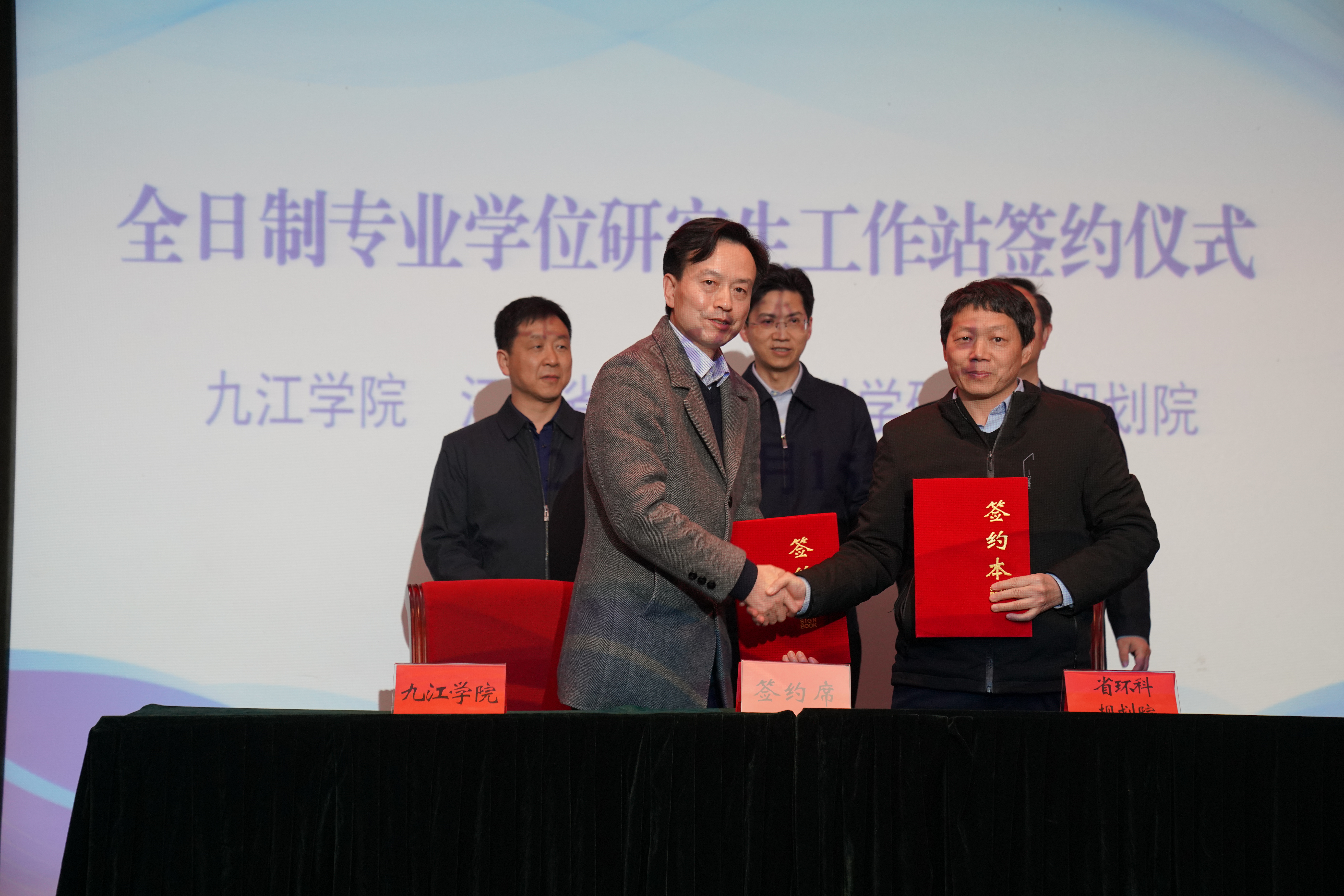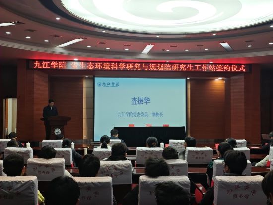 3月15日上午,九江学院与江西省生态环境科学研究与规划院联合共建全日制专业学位研究生工作站签约仪式在逸夫图书馆报告厅举行。江西省生态环境厅党组成员、副厅长杨期勇,永利yl23411集团官网党委委员、副校长查振华,江西省生态环境科学研究与规划院院长刘足根、副院长李惠民,九江市生态环境局党委书记、局长张南等出席仪式。签约仪式由校党委委员、副校长吴维勇主持。