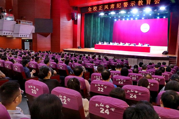 按照学校深入贯彻中央八项规定精神学习教育工作部署要求,6月10日上午,九江学院在丹枫园校区大礼堂召开正风肃纪警示教育会。校党委书记李明斌主持会议并讲话,他强调,学校各级党组织和党员干部要深入学习贯彻习近平总书记关于加强党的作风建设的重要论述,以深入贯彻中央八项规定精神学习教育为契机,锲而不舍贯彻落实中央八项规定精神,纵深推进正风肃纪反腐,以优良作风凝心聚力、干事创业,为学校落实立德树人根本任务、实现高质量发展培育新动能、展现新气象、开创新局面。党委副书记、校长陈小林传达了全省正风肃纪警示教育会精神,党委委员、纪委书记刘波通报了违规吃喝、违规收礼典型案例,校党委班子成员出席会议。
