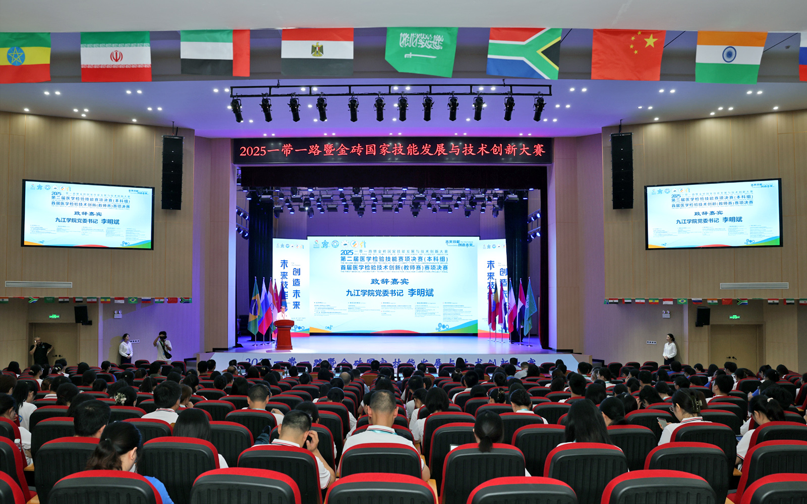 九江学院党委书记李明斌教授在致辞中表示,本次大赛旨在为医学检验人才提供展示舞台,加强国际医学检验技术交流,推动院校与医疗机构对标国际标准,共同探索优化人才培养体系,让教学内容与行业需求同频共振,为医学检验教育注入持续发展动力。同时,赛项必将有力推动医学检验技术人才培养体系升级与创新发展。