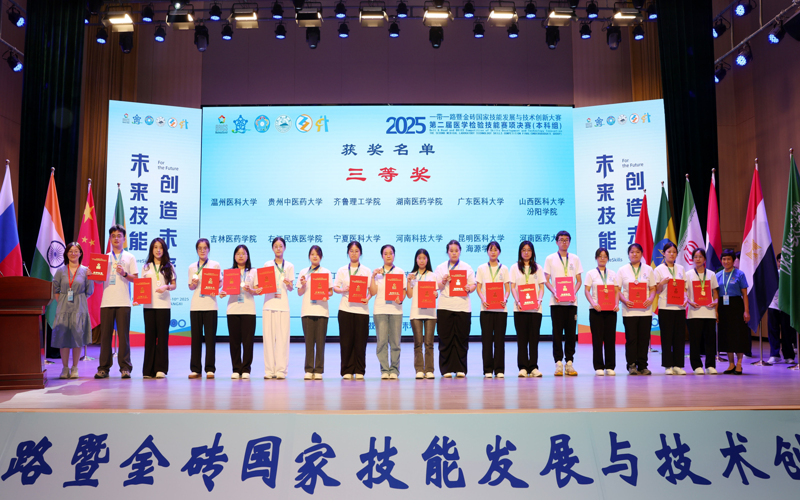 “一带一路”暨金砖国家技能发展国际联盟医学检验分委会主任委员夏薇教授在致辞中指出,本次大赛是“一带一路”医学检验技术赛项的第一个本科赛事,是从无到有的、开创性的赛事,检验分委会将进一步深化与国内外检验院校的合作,加快推动医学检验教育标准与国际前沿同步,培养具备国际化视野的技术技能人才。