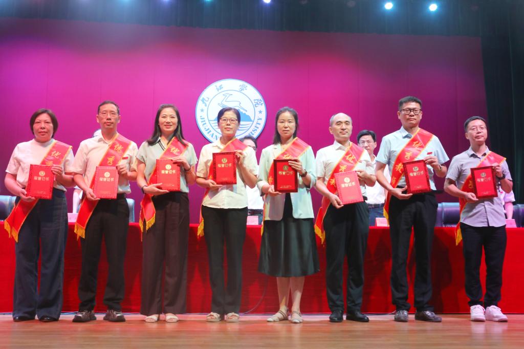 查振华在主持会议时指出,要以“铸魂强师”为根本,筑牢高质量教师队伍“压舱石”;要以“提质创新”为核心,激活学校高质量发展“新引擎”;要以“担当贡献”为导向,打造服务地方高质量发展“主力军”。他强调,全校广大干部教师要以此次表彰大会为新起点,以受表彰的先进典型为榜样,牢记嘱托、砥砺前行,以更加昂扬的斗志、更加扎实的作风、更加优异的成绩,共同谱写特色鲜明高水平应用型大学建设新篇章,为教育强国建设贡献九江学院力量!