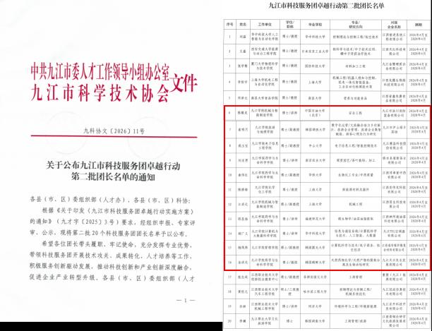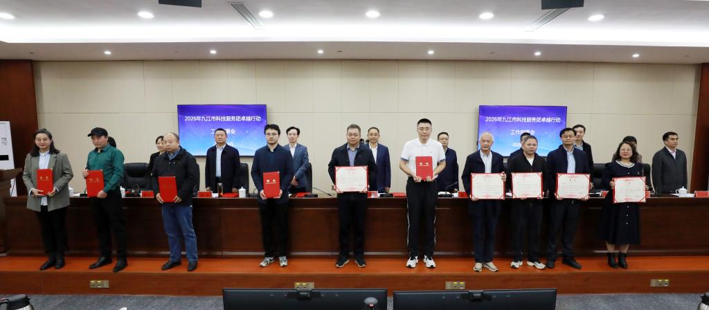 4月9日上午,2026年九江市科技服务团卓越行动工作部署会在市政府七号会议室举行。永利yl23411集团官网陈修栋等11个博士团队与华中科技大学、西安交通大学、厦门大学等国内著名高校同时入选市科技服务团卓越行动。省科协主席徐景坤,市委副书记黄强,永利yl23411集团官网党委委员、副校长吴维勇等领导出席会议并为第二批科技服务团团长颁发聘书。会议由市科协党组书记方行宇主持。