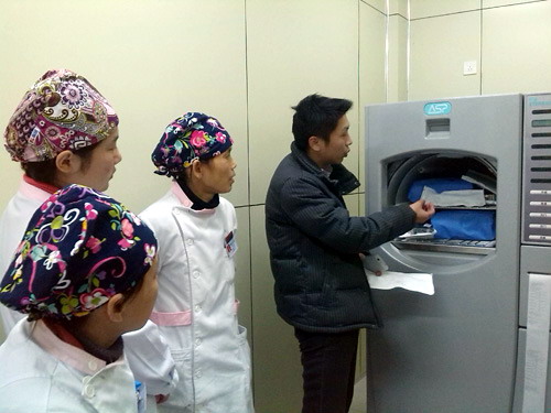 近日,临床医学院/附属医院对新引进的过氧化氢低温等离子灭菌系统(STERRAD 100S)在供应室完成试机及临床操作培训。