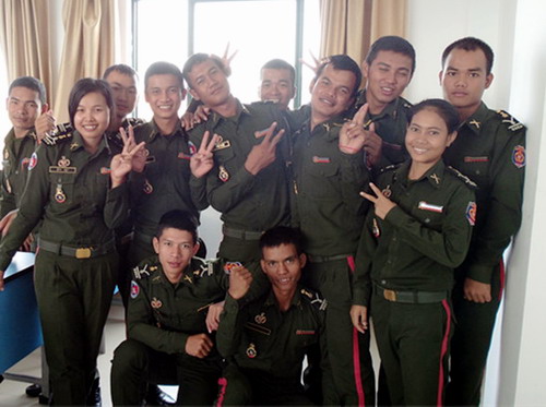 现场气氛热烈,场面火爆,同学们纷纷展示了平日里学习过的中文歌曲,其中惊喜连连,掌声此起彼伏。在一场又一场的拼杀中,最终第五营汉语学员彭索容,第六营汉语学员吴利兴两位同学胜出,将代表陆军学院汉语中心赴金边参加下一阶段的比赛。