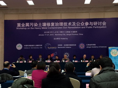 1月17日-20日,重金属污染土壤修复治理技术及公众参与研讨会在江西南昌市召开,永利yl23411集团官网鄱阳湖生态经济研究中心杨期勇、邱秀文和程鹏飞等应邀参加了会议。会议由中国科学院南京土壤研究所、布莱克·史密斯环境研究所、江西省科学院和江西省科学技术协会联合举办。中国科学院南京土壤所赵其国院士作了题为“我国土壤重金属污染问题与治理对策”主旨报告。