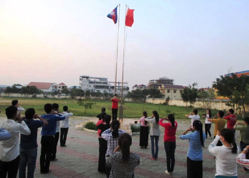2月6日下午,柬埔寨首都金边凉爽,柬埔寨王家研究院孔子学院在孔子学院大楼前举行“中国功夫体验活动”。工作了一天的孔子学院院长谢莫尼勒(Chea Munyrith)、中方院长帅式毅、全体汉语教师志愿者,在孔子学院上晚课的学员等约100余人参加了活动。