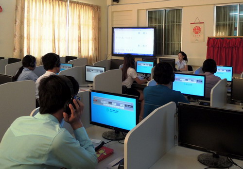 3月28日,柬埔寨王家研究院孔子学院本部成功举办首次汉语水平口语考试(HSKK),共有205名考生参加此次考试。
