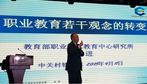 4月11日下午,大会继续进行了“创新创业驱动转型,校企协同实现共赢”的主题论坛。教育部职业技术教育中心研究所所长杨进,做了“职业教育若干观念的转变”的主题报告,深刻地阐述了教育与学习的关系、职业教育的产品观、顾客观、质量观,指出了职业教育面临的新挑战,并给出了职业教育发展的根本出路,即“正确地做正确的事!”。来自百度营销大学的“‘互联网+’时代应用型人才培养模式探讨”报告,就企业创新创业扶持计划、校企合作发展模式做了介绍。来自北京交通大学的“对创新人才培养与创业教育的实践与思考”报告,就本校校企合作的经验和成功的案例进行了现场分享。