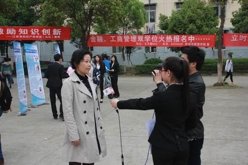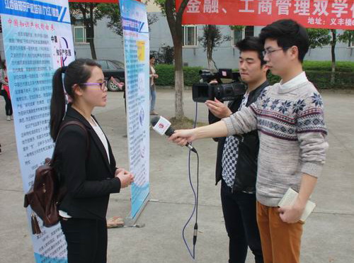 活动通过主题展板介绍、发放宣传资料、知识产权有奖问答、微信宣传、现场咨询等方式开展了宣传,吸引了大量同学的驻足参与。九江市知识产权局领导高度重视此次高校知识产权宣传活动,刘晓英副局长亲自来到现场进行指导,在接受九江电视台法制频道采访时就“专利退费是否需要专门表格提出申请”、“何时能解决专利费盲收问题”、“未授权的专利,是否可以变更专利人”等知识产权问题做出了解答,让现场的同学对知识产权有了一个更充分细致的了解。