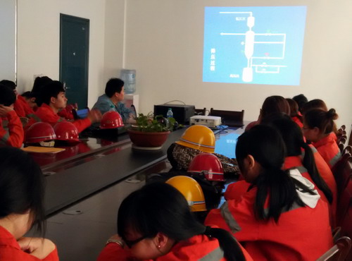 见习期间,在中石化九江分公司的统筹安排下,派出经验丰富的工程师和技术员。就连续重整和聚丙烯生产工艺流程,化工生产设备装置设备、主要设备单元、工艺原理等深入细致的为学生进行讲解和现场操作指导,并对同学们提出的问题一一作了回答。