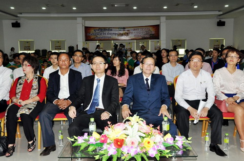 谢莫尼勒发表讲话,他首先对索姆索昆阁下、檀勍生参赞以及在座的所有观众表示衷心的感谢。他向大家简要介绍了孔子学院的基本任务,“汉语桥”比赛以及这几年在比赛中取得的优秀成绩。孔子学院和文化部自2011年以来就保持着密切的关系,并特别感谢文化部多年来给予孔子学院的支持。