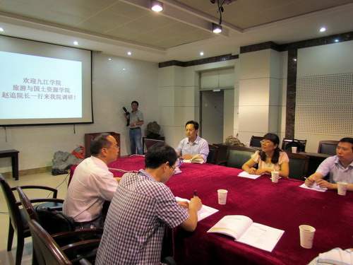 合肥工业大学资源与环境工程学院副院长刘梅教授热情接待了赵追一行。刘教授主持召开了座谈会,会上,该院地理信息科学系主任喻根教授向我们详细介绍了地理信息科学专业的学科背景、师资和教学、科研教研、实验实习基地等情况,双方对学科办学进行了讨论并互通有无,并对庐山实习的经验也进行了深入的交流,会后带领我们参观了相关实验室。