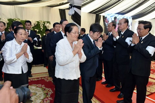 6月12日上午,柬埔寨王家研究院院长、孔子学院理事长克洛媞达(Khlot Thyda)院士率王家研究院代表团前往谢辛官邸吊唁,沉痛悼念参议院主席、人民党主席谢辛(Chea Sim)亲王。孔子学院院长谢莫尼勒(Chea Munyrith)、中方院长帅式毅陪同前往吊唁。