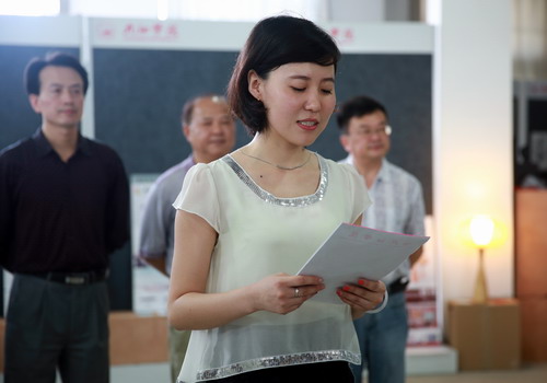 6月16日上午,艺术学院2015届优秀毕业作品展在逸夫图书馆一楼展厅顺利开幕。艺术学院院长吴维勇、党委书记王春生、副院长虞斌、欧阳时来、党委副书记沈杨、教务科科长汤艳、各教研室正副主任以及教师和部分毕业生代表参加,会议由环艺与工造教研室主任吴小亮老师主持。