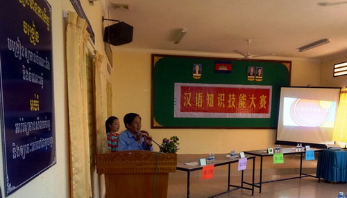 为了让柬埔寨学生在学习汉语的同时,能有机会展现自己的汉语能力,并且能更多地了解中国的历史和文化,从而激发广大学生浓厚的汉语学习兴趣,营造良好的汉语学习氛围,经过精心的准备,7月11日,由柬埔寨王家研究院孔子学院西哈努克省高级中学汉语中心举办的汉语知识技能大赛拉开了帷幕。西哈努克省高级中学校长高吾提(KHOV VUTHY)出席此次大赛并致辞。出席比赛的嘉宾还包括汉语中心柬方负责人尼佤 (NIVOTH)、港华学校校长吕俊侨、西港教育局林江先生、西港经济特区彭小磊主任、李超主任、无锡商业职业技术学院解德道老师及汉语中心全体师生。此次比赛吸引了西港各学校学习中文的学生前来参加。