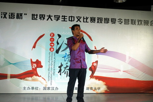 TIGER,第14届“汉语桥”世界大学生中文比赛观摩夏令营营员来自柬埔寨王家研究院孔子学院学员王虎成了观摩营的名人,他才艺出众,热于助人,对中国文化了解较深。