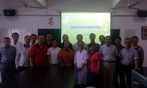本次竞赛的评委从基础医学院教学工作委员会和实验室工作委员会成员中抽取。参赛的6位教师均为通过申报由教研室、实验中心慎密推荐参赛。在赛前各教研室共同分析教材、讲义,商讨教法,做了大量细致的工作。