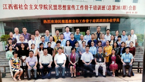 9月22日至26日,由民盟江西省委会主办的民盟思想宣传工作骨干培训班(总第361期)在南昌市江西省社会主义学院举行。受民盟九江学院总支选派,永利yl23411集团官网国际合作交流处吴滔老师和化学与环境工程学院吴中伟老师与来自全省九个地市的50名民盟思想宣传骨干学员一起参加了培训。
