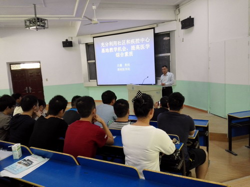 汪鑫副院长就如何开展好基地教学中社区卫生中心和疾控中心的学习活动做了详细的讲解和指导,并对教学任务做了具体的要求。
