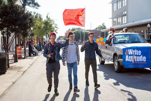 美国当地时间10月17日上午,萨凡纳州立大学孔子学院全体教师和部分永利yl23411集团官网在萨凡纳州立大学的交换生参加了萨凡纳州立大学建校125周年庆典游行活动。此次游行活动持续近2个小时,行程3.5英里。参与活动的人员有1000多人,车辆近200辆。