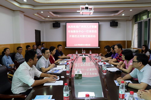 王主任首先感谢了永利yl23411集团官网的热情接待,提出很早就向往九江的魅力,首次来到九江学院交流感到非常荣幸。王主任介绍了广州市开发区的基本情况,历史沿革,并指出来自江西的人才是广州市开发区的主力军,来自赣鄱大地的人才往往是勤劳肯干、踏实奋斗,希望学校能够支持校企对接交流活动。冯部长介绍了广州市人力资源市场服务中心在校企合作方面的做法。邝主任介绍了在广州团市委的领导下,广州市青年就业创业服务中心在青年创业方面的相关工作。