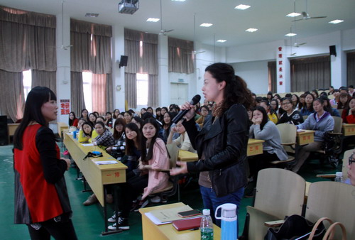 胡老师的精彩报告,引起了在场的教师和同学们的阵阵掌声,大家就如何调动平时不积极的学生积极参与到课堂,如何对待特别顽皮的学生,以及九江学院英语教育专业实习学生实习教育环节还需要在哪些方面改进和加强等问题,与胡老师进行了深入地沟通和交流。
