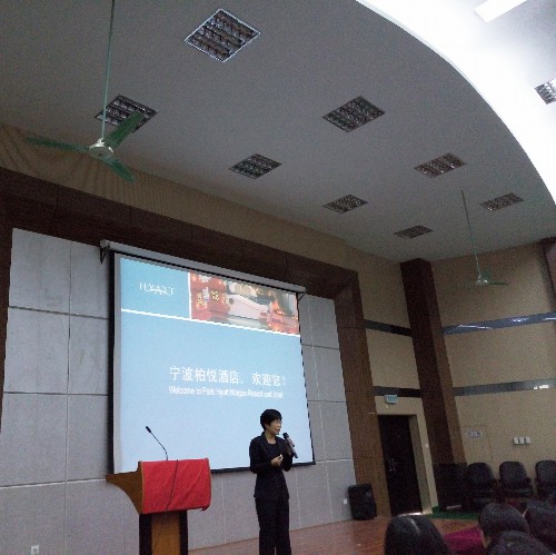 来自美国凯悦集团、英国洲际集团、喜达屋集团、丽思卡尔顿集团、宋城演艺公司、华侨城等代表,分别在报告会上都做了精彩的发言。他们分别为学生们详细介绍了各自集团文化、发展前景、创业空间和职业发展规划等;代表们讲述了个人在集团的创业历程,分享了个人的成功经验,同时也对学生提出了殷切的希望。