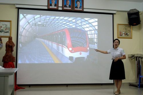 11月11日,柬埔寨王家研究院孔子学院主办的“中国文化节系列活动”之“一带一路”知识讲座在孔子学院大楼二楼多媒体教室举行。汉语教师志愿者戴嘉维主讲,孔子学院谢莫尼勒院长(H.E. Chea Munyrith)、孔子学院汉语教师志愿者以及学生们共约100余人参加。